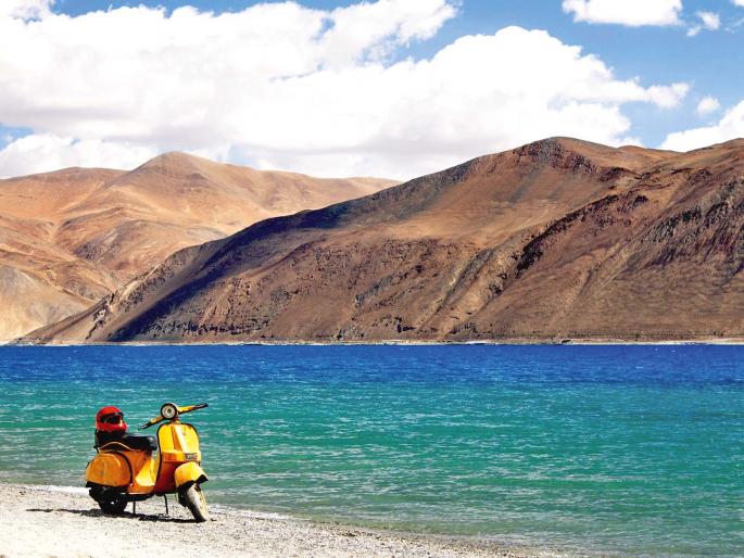 भारत चीन सीमेवर, वायव्येकडून पूर्वेकडे सुमारे 155 किमी पसरलेलं पँगाँग सरोवर म्हणजे जणू समुद्रच आहे. त्यातील 40 किमी भारतात तर बाकी चीनमधे. त्याच्या भेटीची आस लागलेली असताना अचानक दूरवर आजूबाजूच्या मातकट राखाडी पसार्यात एक निळसर तुकडा दिसला. पंधरा मिनिटात आम्ही निळ्या विस्तीर्ण पँगाँग सरोवराच्या काठी होतो. जवळ पोचताच ‘निवळशंख’ या शब्दाचा अर्थ प्रथमच पुरेपूर उमगला. 15000 हजार फुटांवर, त्या शुष्क वाळवंटात, क्षारयुक्त जलाशय असणं हे आश्चर्यकारक आहे. हिमालय समुद्रातून उद्भवला याला पुष्टी देणारं हेही एक कारण असू शकेल. काठावर खूप गर्दी होती. उन्हाळी सुट्यांमुळे लोकप्रिय ठिकाणी हे अपेक्षितही होतं. लाल, निळ्या, हिरव्या कुल्ल्यांच्या अनेक खुच्र्या, दोन पिवळ्या व्हेस्पा आणि लाल हेल्मेट्स आणि ‘तसे’ फोटो काढून घेण्यासाठी अहमहमिकेनं सरसावणारे अनेक ‘इडियट्स’. अजित, मक्या आणि मी आयआयटीचे आणि तसे वेगळ्या अर्थानं ‘इडियट्स’च, पण बॉलीवूडचा हा प्रभाव थक्क करणारा होता. मागे पसरलेलं अफाट सौंदर्य विसरून स्वतर्तच मश्गुल असलेली गर्दी पाहून थोडी खंत वाटली, पण मी मात्न त्या निळाईच्या, अनेक रंगछटांच्या विस्तीर्ण आविष्कारात हरवून गेलो होतो!