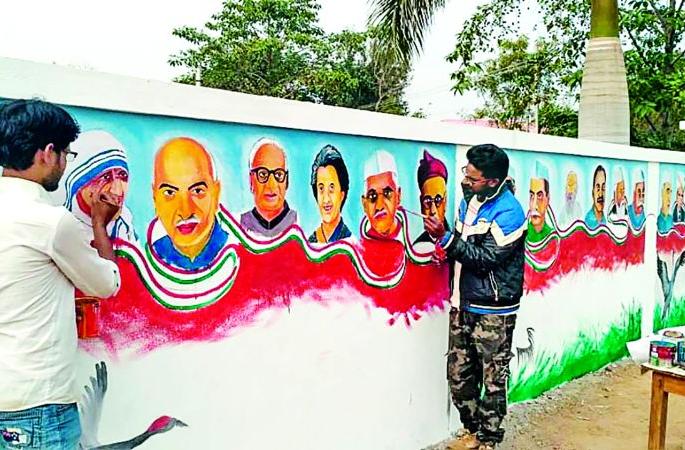 नरेश रहिले गोंदिया:शासकीय इमारतींच्या सुरक्षा भिंतीवर विविध कलाकृती काढून त्या आकर्षक बनविण्याचा प्रयत्न केला जातो. मात्र थोर पुरूष किंवा भारतत्नांच्या आठवणी सदैव स्मरणात राहाव्या, त्यांच्यापासून सदैव प्रेरणा मिळत राहावी यासाठी गोंदिया येथील तत्कालीन पोलीस अधीेक्षकांनी चक्क त्यांच्या शासकीय निवासस्थानच्या सुरक्षा भिंतीवर देशातील सर्वच ४५ भारतरत्नांचे चित्र काढून लोकांना प्रेरणा मिळवून देण्याचा प्रयत्न केला आहे. त्या भिंतीवरील भारतरत्नांचे चित्र प्रेरणादायी ठरत आहेत. या प्रेरणादायी भिंतीतून भारतरत्नांच्या आठवणी जपल्या जात आहेत.सुरक्षा भिंतीवर निसर्गाचा देखावा काढणाऱ्यांची संख्या काही कमी नाही. परंतु सुरक्षाभिंत अनेकांना प्रेरणादायी ठरावी असा मानस ठेवणे कठीणच. परंतु गोंदियाचे तत्कालीन पोलीस अधीक्षक हरीष बैजल यांनी भारतात आजपर्यंत किती भारतरत्न झालेत हे सहजरीत्या लोकांच्या ध्यानीमनी यावेत यासाठी आपल्या बंगल्याच्या सुरक्षा भिंतीवर त्यांचे चित्र साकारले आहे. पोलीस अधीक्षकांच्या बंगल्यावरील भिंतीवर ७० फूट लांब आणि ६ फूट उंच सुरक्षा भिंत चक्क भारतरत्नांची आठवण करून देणारी ठरत आहे. गोंदिया जिल्ह्यात सारस वैभवही त्या भिंतीवर नमूद करण्यात आले. देशातील ४५ भारतरत्नांचे चित्र त्या ७० फूट लांब असलेल्या सुरक्षाभिंतीवर काढून लोकांना प्रेरणा देणारी भिंत तयार केली. गोंदियातील दोन आर्टिस्टच्या माध्यमातून या सुरक्षाभिंतीवर भारतरत्नांचे चित्र साकारण्यात आले आहे.गोंदियाच्या पतंगा मैदानावर पोलीस अधीक्षक कार्यालयाच्या मागील भागात जिल्हाधिकारी, मुख्य कार्यपालन अधिकारी,मुख्य न्यायाधीश, पोलीस अधीक्षक व जि.प.अध्यक्ष यांची शासकीय निवासस्थाने एकाच रस्त्यावर आहेत.त्या बंगल्यांसमोर कर्मचाऱ्यांची वसाहत आहे. त्या वसाहतीत राहणाºया कर्मचाºयांची व त्यांच्या मुलांची याच रस्त्यावरून ये-जा असते. त्या मुलांना, कर्मचाऱ्यांना या भारतरत्नांची सहज माहिती व्हावी, यासाठी ही भिंत त्यांच्यासाठी अत्यंत प्रेरणादायी ठरणार आहे. सहजरीत्या कुणालाही प्रश्न विचारला की देशात आतापर्यंत किती भारतरत्न झालेत तर पदावर असलेल्या मोठ्या-मोठ्या अधिकाऱ्यांनाही या प्रश्नाचे उत्तर सहज आठवत नाहीत. परंतु या निमित्ताने या सुरक्षाभिंतीवर तयार केलेल्या चित्रांमुळे आता गोंदिया जिल्ह्यातील विद्यार्थ्यांना,कर्मचाऱ्यांना ती भिंत पाहिल्यावर सहजरीत्या भारतरत्न कोण-कोण झाले याचे स्मरण होते.