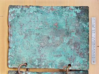 या ताम्रपटाला दोन पत्रे आहेत. ते ३0 सेमी लांब आणि २३.७ सेमी रुंद अशा मापाचे आहेत. ते एकत्र ठेवण्याकरिता पत्र्यांना दोन दोन छिद्रे पाडून त्यात कड्या घातलेल्या आहेत. मजेची गोष्ट म्हणजे या दोन छिद्रांपैकी एक पूर्वीच फाटलेले आहे आणि ते पुन्हा सांधून त्यात तांब्याची नवीन कडी अडकवलेली आहे. तर दुसरे छिद्र आणि त्यातील ब्राँझची कडी मात्र शाबूत आहे. हा ताम्रपट २ किलो ७0७ ग्रॅम इतक्या वजनाचा आहे. भांडारकर संस्थेकडे हा ताम्रपट आला तोच मुळी त्याच्या स्वच्छतेकरिता. तांब्याच्या गंजाने तो अगदी हिरवा पडलेला होता- वाचता येणे शक्यच नव्हते. ताम्रपटाची आणखी हानी होणार नाही, अशा बेताने विविध रसायने वापरून त्यावरचा गंज काढण्यात आला. कोणतीही संहत (उल्लूील्ल३१ं३ी)ि रसायने या कामी उपयोगाची नव्हती. काढून टाकलेल्या गंजाचे वजन तब्बल ३२ ग्रॅम इतके भरले. विविध रासायनिक प्रक्रिया चार-पाच वेळा केल्यावर ताम्रपट स्वच्छ झाला आणि ‘बोलू लागला’.