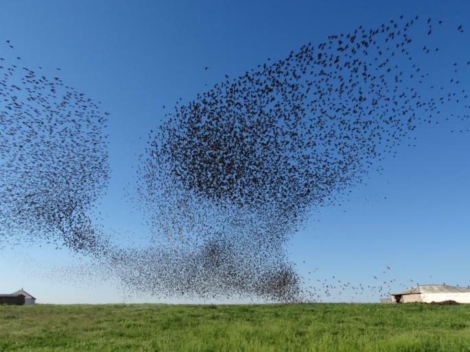 हा भलामोठा थवा आकाशात कसरती करतो. मध्येच एकाचे दोन थवे होतात, दोन वेगवेगळ्या दिशांना वेगात जाऊन पुन्हा क्षणार्धात ते एक होतात.
