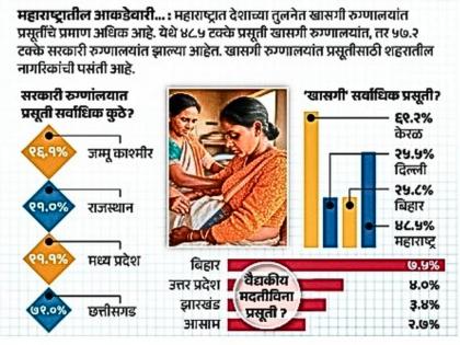 महाराष्ट्रात जवळपास अर्ध्या (४८.५%) महिलांची प्रसूती खासगी रुग्णालयांत होत आहे. हा आकडा राष्ट्रीय सरासरीपेक्षा जवळपास दुप्पट आहे.