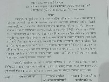 वाहन आणि वाहन परवाना म्हटलं की आरटीओ अधिकाऱ्यांच नाव घेतल्याशिवाय आपण पुढे जात नाही. मात्र, हेच अधिकारी अनेकदा आपल्या सोयीने कामकाज करतात. तर, भ्रष्टाचाराच्या यादीतही अनेक अधिकाऱ्यांची नावे येतात. मात्र, आता गृह विभागाने तब्बल 37 आरटीओ अधिकाऱ्यांचे निलंबित करत अशा अधिकाऱ्यांना चाप दिला आहे. मुंबई उच्च न्यायालयाने जनहित याचिका क्र. 28/2013 नुसार वाहनांना योग्यता प्रमाणपत्रे देताना नियमानुसार काटेकोर तपासणी करण्याते आदेश दिले होते. तरीही, उप-प्रादेशिक परिवहन कार्यालय यवतमाळ, कोल्हापूर, पुणे, औरंगाबाद, पनवेल व ठाणे या कार्यालयात करण्यात आलेल्या तपासणीमध्ये नियमबाह्य रितीने प्रमाणपत्र वाटप करण्यात आल्याचे उघडकीस आला. त्यानंतर, संबंधिक कार्यालयातील 28 मोटार वाहन निरीक्षक आणि 09 सहायक मोटार वाहन निरीक्षकांना निलंबित करण्यात आले आहे.