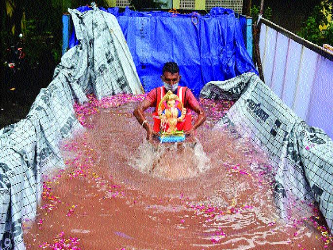 कृत्रिम तलावात ६०% विसर्जन; कोरोनाचे विघ्न दूर करण्याचे साकडे