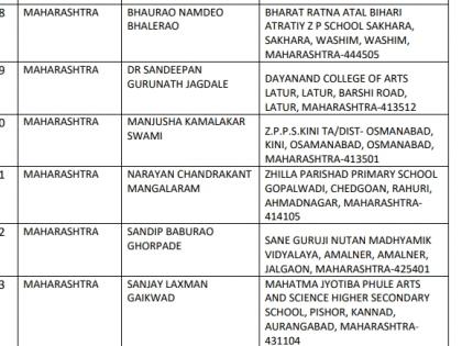 राज्याच्या शिफारसीनुसार महाराष्ट्रातून केंद्रीय समितीकडे 6 नावांची यादी पाठविण्यात आली होती. या 6 शिक्षकांनी केंद्रीय निवड समितीसमोर आपले सादरीकरण केले. त्यामध्ये, गोपाळवाडीतील जिल्हा परिषद शिक्षक नारायण मंगलाराम यांची निवड झाली आहे. राज्य निवड समितीकडून निवड झालेल्या 5 जणांमध्ये वाशिम, लातूर, उस्मानाबाद, अहमदनगर, जळगाव आणि औरंगाबाद या 6 जिल्ह्यातील शिक्षकांची निवड करण्यात आली होती.