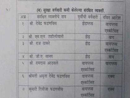 भाजपा प्रदेशाध्यक्ष चंद्रकांत पाटील, भाजपाचे खासदार नारायण राणे, आमदार प्रसाद लाड, रावसाहेब दानवे, राम कदम यांना विशेष सुरक्षा यापुढे नसणार आहे. या यादीमध्ये अन्य भाजपाच्या नेत्यांचा देखील समावेश आहे.