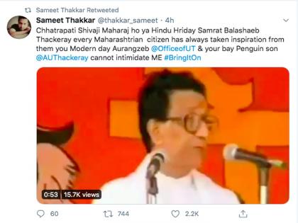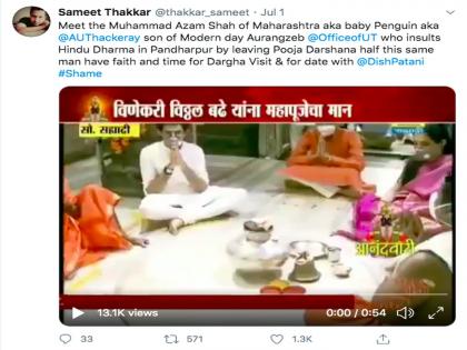 ट्विटर यूजर समीत ठक्कर यांनी वापरलेल्या “पेंग्विन बेटा” आणि “बेबी पेंग्विन” या शब्दांद्वारे शिवसेनेच्या वंशजांवर एकप्रकारे टोला लगावला आहे. नंतरचे सोशल मीडियावर या हॅशटॅगचा ट्रेंड झाला. हिंदुस्तान टाईम्सच्या वृत्तानुसार जून आणि जुलैमध्ये (1 जून, 30 जून आणि 1 जुलै) तीन दिवसांत आक्षेपार्ह ट्विट पोस्ट करण्यात आली होते, परंतु 13 जुलैपर्यंत शिवसेनेच्या कायदेशीर सल्लागाराने व्ही.पी. रोड पोलीस ठाण्यात ठक्करच्या विरोधात तक्रार दाखल केली नव्हती. उद्धव ठाकरे यांना मुगल शासक ‘औरंगजेब’ म्हणून ठक्कर यांने संबोधित केले आहे. तर ठक्कर याने आदित्य ठाकरेंचा उल्लेख मुहम्मद आजम शहा असा केला आहे, ‘मोहम्मद आजम शहा’ जो औरंगजेबचा मुलगा आहे. यावर धर्मेंद्र मिश्रा यांनी आक्षेप घेतला आहे. धर्मेंद्र मिश्रा यांच्या तक्रारीनंतर व्ही. पी. रोड पोलीस ठाण्यात बदनामीचा, माहिती तंत्रज्ञान कायद्यांतर्गत गुन्हा दाखल करण्यात आला असून समीर ठक्करला जबाब नोंदवण्यासाठी हजर राहण्याचा आदेश देण्यात आला आहे.