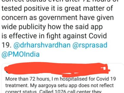 आरोग्य सेतू हे अॅप पास सारखे अनेक ठिकाणी वापरले जात आहे. आरोग्य सेतू मोबाईलमध्ये डाऊनलोड करून त्यावर आपली माहिती, नंबर रजिस्टर केल्यानंतर तुम्ही कोरोनाबाधित आहात की नाही ते स्टेटसमध्ये दिसते. तसेच हे अॅप आजुबाजुला कोणी कोरोनाबाधित नाही ना याचीही माहिती देत नागरिकांना अलर्ट करते. अनेक ऑफिसेस, विमानतळांवर, मेट्रो स्टेशनमध्ये 'यु आर सेफ'चा स्टेटर पाहूनच एन्ट्री दिली जाते. असे अॅपच जर कोरोनाबाधिताचा स्टेटस तीन-चार दिवस झाले तरीही अपडेट करत नसेल तर आजुबाजुच्यांना तरी कसे समजणार, असा प्रश्न उपस्थित होत आहे.