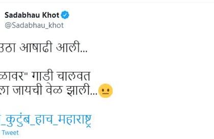 'उठा उठा आषाढी आली, 'स्वबळावर' गाडी चालवत पंढरीला जायची वेळ आली', सदाभाऊ खोतांची खोचक टीका