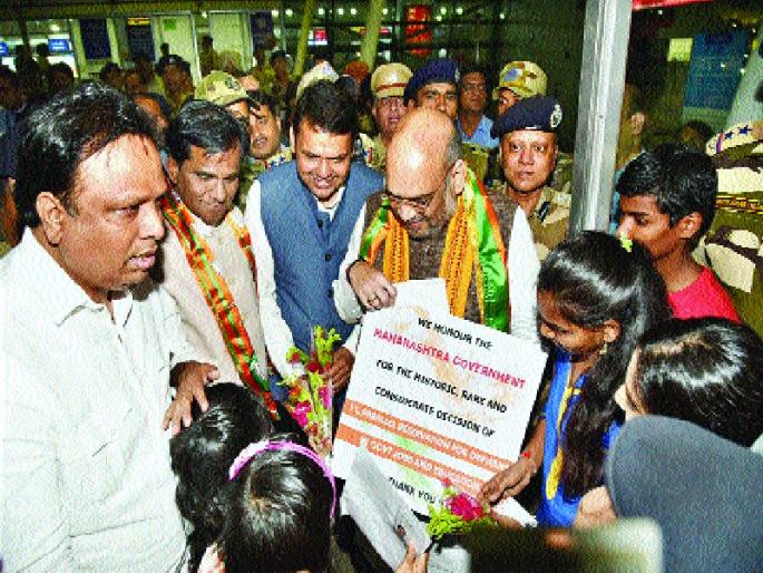 मुंबई - भारतीय जनता पार्टीच्या स्थापना दिनानिमित्त शुक्रवारी बीकेसी मैदानावर होत असलेल्या महामेळाव्यात गर्दीचे विक्रम मोडण्याची जय्यत तयारी भाजपाने केली आहे. मेळाव्याला मार्गदर्शन करण्यासाठी भाजपाचे राष्ट्रीय अध्यक्ष अमित शहा गुरुवारी सायंकाळी मुंबईत आले असता त्यांचे मुंबई भाजपाच्या वतीने जंगी स्वागत करण्यात आले. मुख्यमंत्री देवेंद्र फडणवीस, प्रदेशाध्यक्ष खा. रावसाहेब दानवे आदी या वेळी उपस्थित होते.