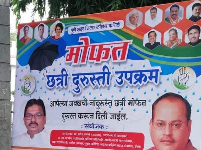 मुंबई: पुण्यातील काँग्रेस भवनमध्ये शहर काँग्रेसने सुरू केलेल्या विनामूल्य छत्री दुरूस्ती उपक्रमाची सध्या जोरदार चर्चा रंगली आहे. काँग्रेसच्या विनामूल्य छत्री दुरूस्तीची समाजमाध्यमांवर बरीच टर उडवली गेली. ७० वर्षांच्या कारभारानंतर आलेली वेळ, आता भाजपाची काही धडगत नाही अशा आशयाच्या पोस्ट केल्या गेल्या. त्यात अर्थातच भाजपा समर्थक आघाडीवर होते.