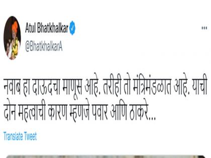 न्यायालयाच्या या स्पष्टीकरणानंतर भाजपाने निशाणा साधला आहे. नवाब मलिक हे दाऊदचा माणूस आहे. तरीही ते मंत्रिमंडळात आहे. याची दोन महत्वाची कारण म्हणजे पवार आणि ठाकरे..., असं भाजपाचे नेते अतुल भातखळकर यांनी ट्विटरद्वारे म्हटलं आहे.