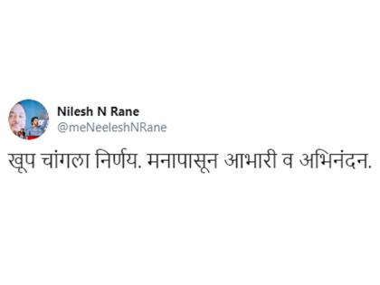 उद्धव ठाकरे यांचे कट्टर विरोध म्हणून ओळखले जाणारे भाजपाचे नेते निलेश राणे यांनी ठाकरे सरकारचे मनापासून अभिनंदन केले आहे.