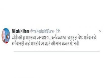 निलेश राणे म्हणाले की, कर्नाटकव्याप्त महाराष्ट्र हा विषय भाषेचा आहे, धर्माचा नाही. काही माणसांचं वय वाढलं तरी त्यांना अक्कल येत नाही. त्यामुळे कोणीतरी या माणासाला च्यवनप्राश द्या असं म्हणत उद्धव ठाकरे यांच्यावर निशाणा साधला आहे.