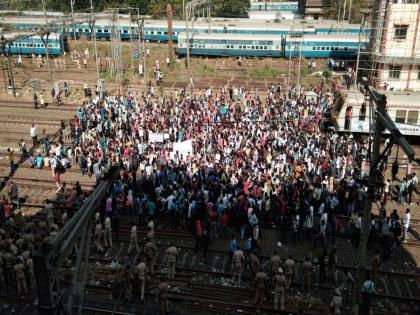 #WATCH: Railway traffic resumes between Dadar & Matunga, agitating railway job aspirants still present at the spot where they have been protesting, between Matunga & Chhatrapati Shivaji Terminus railway station. #Mumbaipic.twitter.com/J72KIhc38b