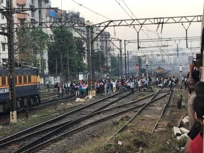 #UPDATE#Mumbai: Railway traffic resumes, agitating railway job aspirants still present at the spot where they have been protesting, between Matunga & Chhatrapati Shivaji Terminus railway station. pic.twitter.com/hKaZ5mXtGQ