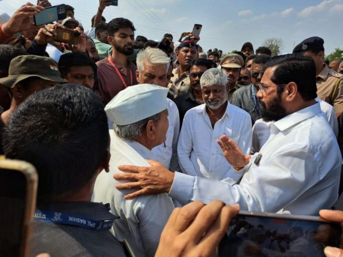 अवकाळी पावसामुळे नुकसानग्रस्त शेतकऱ्यांशी संवाद साधून एकनाथ शिंदे यांनी त्यांना धीर दिला. राज्य सरकार शेतकऱ्यांच्या पाठीशी ठामपणे उभे असून या संकटकाळात मदतीबाबत मंत्रिमंडळात लवकरच निर्णय घेतला जाईल, अशी ग्वाही एकनाथ शिंदे यांनी दिली.