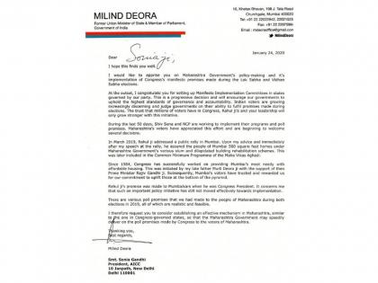 या पत्रात मिलिंद देवरा यांनी म्हटलं आहे की, सर्वप्रथम आपले आभार मानतो कारण काँग्रेसशासित राज्यांमध्ये पक्षाने लोकांना दिलेल्या आश्वासनाची पूर्तता करण्यासाठी समिती गठीत करण्याचा निर्णय घेतला. या निर्णयामुळे सरकारला लोकांचा विश्वास आणि पारदर्शक कारभार पुढे नेण्यासाठी मदत होईल. निवडणुकीत पक्षाने दिलेल्या आश्वासनाबाबत भारतीय नागरिक सुज्ञ झाला आहे. अनेकांनी पक्षाचे अध्यक्ष सोनिया गांधी, राहुल गांधी आणि काँग्रेसवर विश्वास ठेवला आहे असं त्यांनी सांगितले.