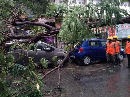 06.00 pm: चक्रीवादळामुळे सकाळपासून मुंबईत जोरदार वारे वाहत असून तसेच मुसळधार पाऊस कोसळत असल्यामुळे घाटकोपर येथील पंतनगरच्या आर.एन. नारकर मार्गावरील महाकाय वृक्ष उन्मळून पडले आहे. तसेच घाटकोपर बस डेपो जवळील लक्ष्मीबाग नाला तुडुंब भरून वाहत असून नाल्याकाठावरील नागरिकांच्या सुरक्षिततेच्या दृष्टिकोनातून मुंबईच्या महापौर किशोरी पेडणेकर यांनी दोन्ही ठिकाणी भेट देऊन सद्यस्थिती जाणून घेतली. संबंधित कोसळलेले वृक्ष तात्काळ हटविण्याचे निर्देश महापौरांनी यावेळी संबंधित महापालिका अधिकाऱ्यांना दिले.