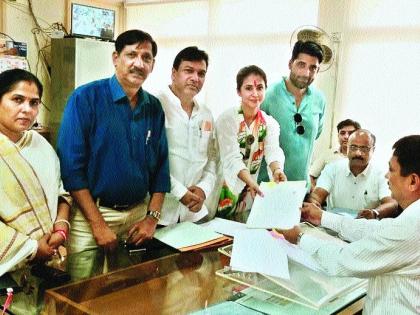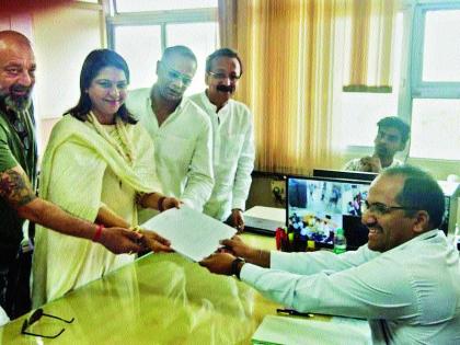 केला. त्यांच्यासोबत असलेल्या संजय दत्त यांना पाहण्यासाठी व त्यांच्या सोबत छायाचित्र काढण्यासाठी या वेळी झुंबड उडाली होती. काँग्रेस कार्यकर्त्यांनी या वेळी ‘चौकीदार चोर है’ची घोषणाबाजी केली.मात्र पोलिसांनी त्याकडे दुर्लक्ष केल्याचे चित्र होते.