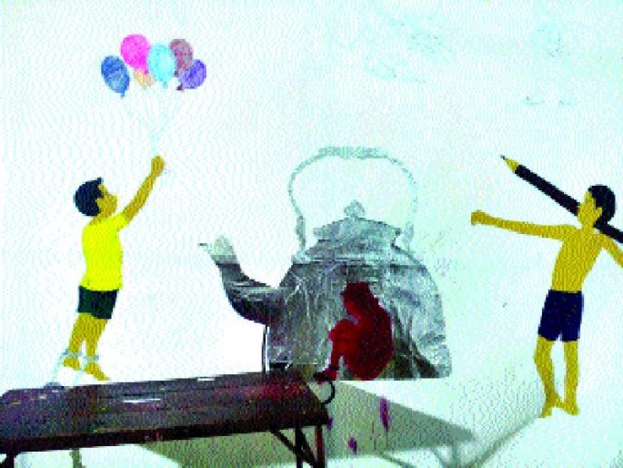 मुंबई : गणपतीच्या सजावटीची लगबग सर्वत्र सुरू असल्याचे चित्र मुंबापुरीत दिसून येत आहे. यात अंध विद्यार्थ्यांनी पुढाकार घेत गणराजाच्या देखाव्याची सजावट केली आहे. दादर पूर्वेकडील दादासाहेब फाळके मार्गावरील श्रीमती कमला मेहता दादर अंधशाळेतील १० अंध मुलींनी मापलावाडीच्या गणपतीच्या देखाव्याची सजावट केली आहे.मापलावाडी गणपतीच्या सजावटीमध्ये अंध मुलींनी चित्र काढून जनजागृती करण्याचा प्रयत्न केला. चित्रामध्ये एक मुलगा हातात फुगे घेऊन मुक्तपणे संचार करण्याचा प्रयत्न करीत आहे. मात्र, त्याचे पाय साखळीने बांधण्यात आले आहेत. एका चित्रात चहाच्या किटलीमध्ये मूल बांधण्यात आले असल्याचे दिसून येत आहे. समाजात बालकामगारांचा वावर असल्याचे भाष्य याद्वारे केले जात आहे. मुलींना घरकामासाठी बांधले जात असल्याचे चित्र अंध मुलींकडून काढण्यात आले आहे.अंशत: अंध आणि अंध मुलींना गणपतीचा देखावा सजावण्याचा पहिलाच अनुभव होता. अतिशय वेगळा आणि खूप चांगला प्रतिसाद या वेळी मिळाल्याचे कमला मेहता दादर अंधशाळेच्या कला शिक्षिका शरयू दराडे यांनी सांगितले. या वेळी सुरेखा जाधव, स्मिता कदम या शिक्षकांनी मार्गदर्शन केले. मापलावाडीच्या गणपती मंडळाचे सहसचिव शेखर कांदळेकर यांनी सांगितले की, कर्णबधिर आणि अंध विद्यार्थ्यांना कला क्षेत्रात व्यासपीठ मिळण्यासाठी देखावा सजावटीसाठी या विद्यार्थ्यांची मदत घेतली. बालकामगार, पर्यावरण या विषयांवर मुलांनी डोळसपणे चित्रे काढली आहेत. मंडळाचे यंदाचे ५२वे वर्ष असल्याने मंडळाचे अध्यक्ष राम सावंत आणि मंडळाच्या वतीने ही संकल्पना सुचविण्यात आली. या वेळी कर्णबधिर, अंध विद्यार्थ्यांना बाप्पाची आरास करण्याची संधी मिळाली असल्याचे कांदळेकर यांनी सांगितले.
