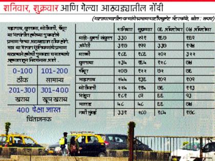 माझगाव, कुलाबा, बोरीवली, चेंबूर या भागांतील हवेच्या गुणवत्तेचे प्रमाण गेल्या आठवड्यात ठीक होते. मात्र या भागात धूलिकणांचे प्रमाण वाढल्याने हवेची गुणवत्ता घसरल्याचे अहवालातून निदर्शनास येते.