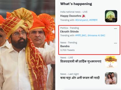 दसरा मेळावा संध्याकाळी होणार असला तरी ट्विटरवर आज सकाळपासूनच मुख्यमंत्री एकनाथ शिंदे टॉप ट्रेंडमध्ये आले आहेत. ट्विटरच्या इंडिया ट्रेंडमध्ये एकनाथ शिंदे हे टॉप ट्रेंडमध्ये आहेत. तर वांद्रे असा हॅशटॅग दुसऱ्या क्रमांकावर ट्रेंड होत असल्याचं दिसून आलं आहे. याशिवाय #ShivsenaAtBKC, #चला_BKC हे हॅशटॅग ट्रेंडमध्ये आहेत.