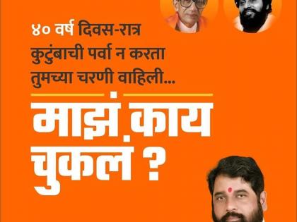 माझं काय चुकलं या शिर्षकाखाली एकनाथ शिंदे आणि त्यांच्या समर्थकांनी उद्धव ठाकरेंवर प्रश्नांची सरबत्ती केली आहे. त्यात एकनाथ शिंदे यांनी उपस्थित केलेले सवाल पुढील प्रमाणे आहेत.