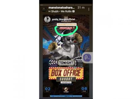 २ ऑक्टोबर रोजी ड्राय डे असतानाही क्लबकडून 'नो ड्राय डे' अशी जाहिरातबाजी सोशल मीडियाच्या माध्यमातून करण्यात आली होती. याचेही स्क्रिनशॉट आता समोर आले आहेत. मेन्शन नावाच्या या क्लबच्या इन्स्टाग्राम अकाऊंटवर एक स्टोरी शेअर करण्यात आली आहे. त्यात #NoDryDay हा हॅशटॅग वापरण्यात आला आहे. त्यामुळे या फाइव्हस्टार हॉटेलला आता कायद्याचाही धाक राहिलेला नाही का? किंवा यांना नेमकं कोण पाठिशी घालत आहे? असा सवाल उपस्थित केला जात आहे.