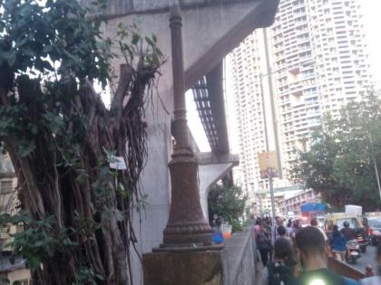 (करी रोड स्थानकाजवळच्या शंभर वर्षे पूर्ण केलेल्या पुलावर गॅस लॅम्पचे आजही असे अवशेष दिसतात.)