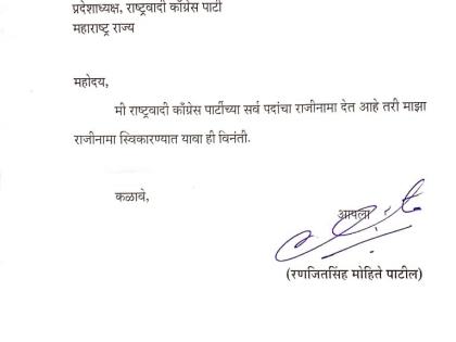 अखेर रणजितसिंह मोहिते पाटलांचा राजीनामा आला, जयंत पाटलांकडे सोपवला