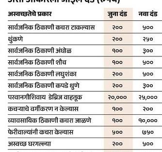 Mumbai सार्वजनिक ठिकाणी अस्वच्छता करणाऱ्यांना लगाम लावण्यासाठी महापालिका प्रशासनाने दंडाच्या रकमेत घसघशीत वाढ केली आहे. कचरा जाळणे, डेब्रिज वाट्टेल तेथे टाकणे, कचऱ्याचे वर्गीकरण न करणे, घरगल्ल्या स्वच्छ न ठेवणे, उघड्यावर अंघोळ करणे, अशा विविध प्रकारे अस्वच्छता केल्यास वाढीव दंड भरावा लागणार आहे.