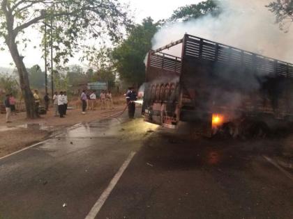 मुंबई - मुंबई-गोवा महामार्गावर लोणेरे येथे भीषण दुर्घटना घडली आहे. लोणेरे येथे दोन ट्रकची समोरासमोर धडक होऊन भीषण अपघात घडला आहे. धडक झाल्यानंतर या दोन्ही ट्रकनी पेट घेतला. या अपघातात 5 जणांचा मृत्यू झाल्याचे वृत्त समोर आले आहे. दरम्यान, मागील बाजूनं येणा-या बाईकस्वाराचाही या अपघातात जागीच मृत्यू झाला आहे.