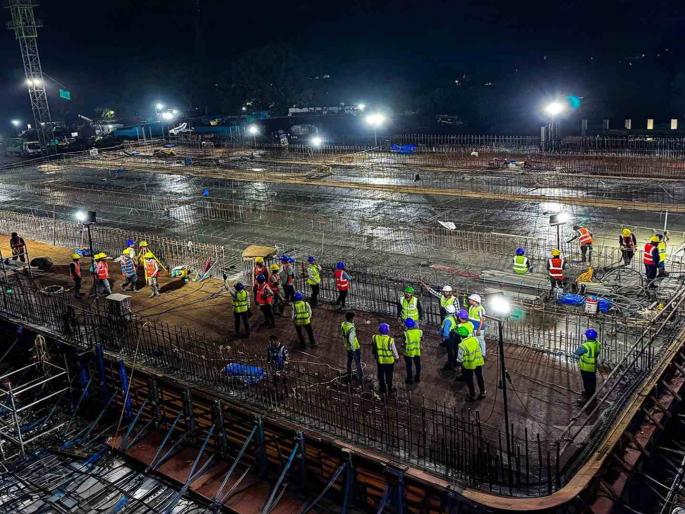 मुंबई : नॅशनल हाय स्पीड रेल कॉर्पोरेशनच्या माध्यमातून मुंबई-अहमदाबाद बुलेट ट्रेन प्रकल्पाचे काम प्रगतिपथावर असून महामुंबईत या प्रकल्पातील विरार या दुसऱ्या स्थानकाच्या पायाभरणीचे काम आता सुरू करण्यात आले आहे. या स्थानकासाठी पहिल्या स्लॅबचे कास्टिंग सुरू झाले असून तो ३५.३२ मीटर रुंद आणि ५० मीटर रुंद आहे. त्यासाठी १५५५ घन मीटर काँक्रीट वापरण्यात येणार आहे.
