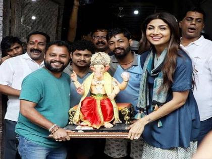 मुंबईकरांनी उत्साहात लाडक्या बाप्पाचे स्वागत केले. अभिनेत्री शिल्पा शेट्टी हिने जल्लोषात गणेशाचे आगमन केले.