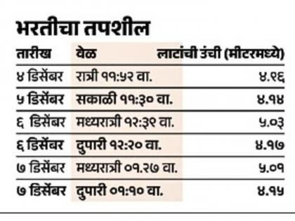 या काळात नागरिकांनी समुद्रकिनाऱ्यानजीक जाऊ नये, असे आवाहन महापालिकेच्या आपत्कालीन व्यवस्थापन विभागाने केले आहे. ६ डिसेंबर रोजी मध्यरात्री १२ वाजून ३९ मिनिटांनी ५.०३ उंचीच्या लाटा उसळणार आहेत.