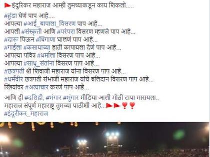 ''इंदुरीकर महाराज जे काही वाक्य बोलले, ते गुरुचरित्रात दिलेल्या 37 व्या अध्यायाच्या संदर्भाने... माहितीसाठी ओवी क्रमांक 51 पासून वाचून बघावं. महाराजांना बदनाम करून ज्याला मोठ व्हायचं असेल त्यांनी जरूर मोठ व्हावं. पण, महाराजांच वाक्य तोडून मोडून दाखवून फुकटची प्रसिद्धी घेऊ नये. महाराज किर्तनात समाजप्रबोधन करतात. कित्येक तरुणांची व्यसनमुक्ती केली. गावागावातील वरती बंद करून किर्तन चालु केली. अनाथ मुलांसाठी 10 वी पर्यंत मोफत शाळा चालवतात. राहिला प्रश्न महिलांचा तर, स्त्री भ्रूण हत्या, लेक वाचवा लेक शिकवा यांसारख्या विषयावर कीर्तनातुन समाजप्रबोधन करतात. हवं तर तुम्ही पूर्ण किर्तन बघू शकता.'' अशा आशयाची पोस्ट सोशल मीडियावर व्हायरल होत आहे. तसेच, अनेकांनी आपल्या डीपीवर महाराजांचा फोटोही लावला आहे.
