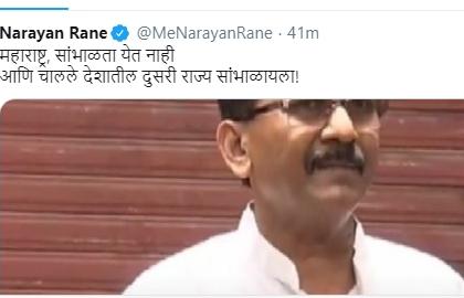आणि चालले देशातील दुसरी राज्य सांभाळायला!', असे ट्विट नारायण राणेंनी केली आहे.