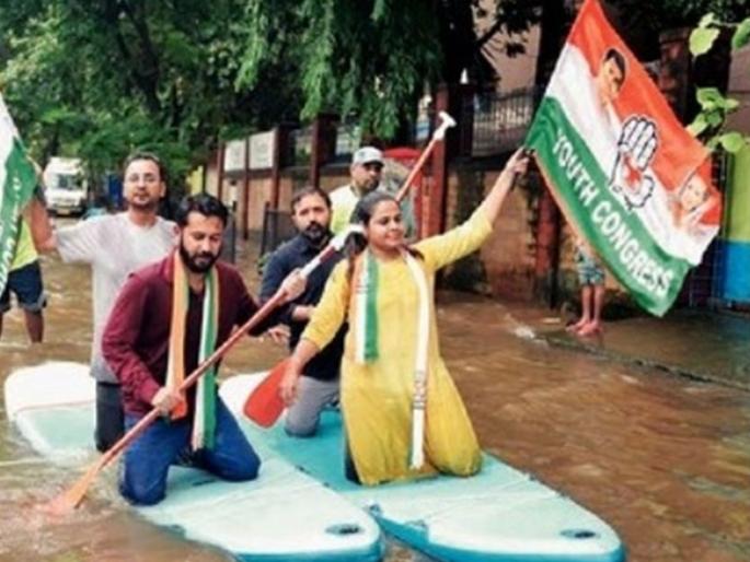 युवक काँग्रेसच्या पदाधिकाऱ्यांनी अंधेरी पश्चिमेतील वीरा देसाई रोड, कंट्री क्लबजवळ, वर्सोवा विधानसभा मतदारसंघामध्ये तुंबलेल्या पाण्यातून चक्क वेसावे कोळीवाड्यातून दोन लहान होड्यांमधून प्रवास करत अनोखे आंदोलन केले. मुंबई युवक काँग्रेस कार्याध्यक्ष सुफियान हैदर, राष्ट्रीय समन्वयक प्रियंका सानप, उत्तर पश्चिम युवक काँग्रेस जिल्हाध्यक्ष प्रतिश तिवारी, मुंबई युवक काँग्रेस सचिव सूरज खोत आणि वर्सोवा विधानसभा युवक काँग्रेसचे कार्यकर्ते या आंदोलनात सहभागी झाले होते.