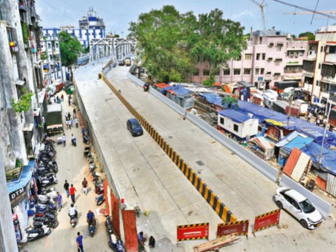 कर्नाक पुलावरील पूर्व - पश्चिम मुख्य वाहतूक मार्ग नागरिकांच्या सेवेत दाखल झाला आहे. पश्चिम दिशेकडील रस्त्याचे काम पावसाळ्यानंतर केले जाणार आहे. त्यामुळे जिन्याचे काम पावसाळ्यानंतर होईल.- अभिजीत बांगर, अतिरिक्त आयुक्त