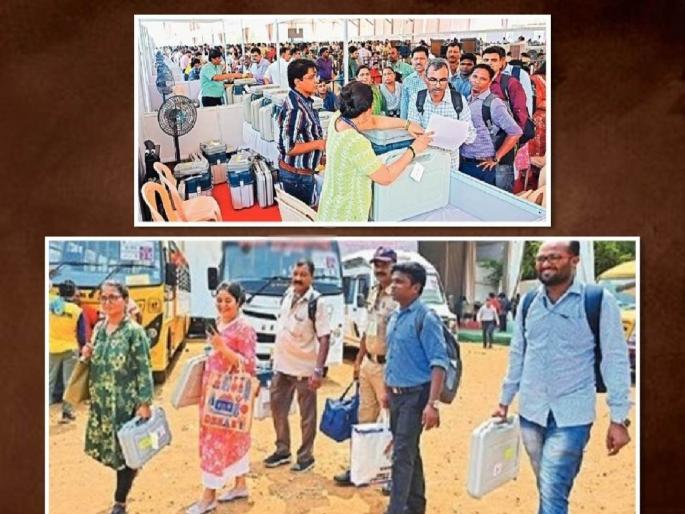 मुंबईतील सहा लोकसभा मतदारसंघांमध्ये सोमवारी मतदान होत असून, त्यासाठी यंत्रणा सज्ज झाली आहे. मतदान केंद्रांवरील कर्मचाऱ्यांना रविवारी मतदान यंत्र, व्हीव्हीपॅट, मतदार यादी आदी साहित्यांचे वाटप करण्यात आले. जोगेश्वरी येथे हे साहित्य मतदान केंद्रांवर नेताना कर्मचारी. तर, धारावी येथील केंद्रावर साहित्याची तपासणी करण्यात आली. (छाया : दत्ता खेडेकर, सुशील कदम)
