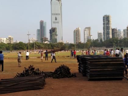 मुंबई - राज्यातील सत्तास्थापनेच्या संघर्षात भाजपाविरोधी महाविकास आघाडीने बाजी मारल्यानंतर महाराष्ट्र विकास आघाडीचे नेते म्हणून उद्धव ठाकरे मुख्यमंत्रिपदाची शपथ घेणार आहे. उद्या दादर येथील शिवाजी पार्क मैदानात मुख्यमंत्र्यांचा शपथविधी होणार असून या सोहळ्यासाठी प्रशासनासोबतच शिवसेना, काँग्रेस-राष्ट्रवादीनेही जय्यत तयारी केल्याचं दिसून येत आहे.