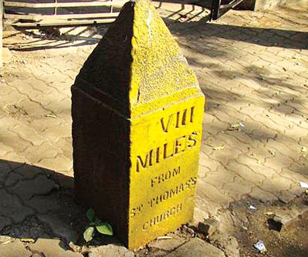 ब्रिटिश काळात मुंबईत काही ठिकाणी मैलाचे दगड लावण्यात आले होते. कित्येक वर्षांनंतर यातील काही मैलाचे दगड नामशेष झाले असून, काही शिल्लक आहेत.