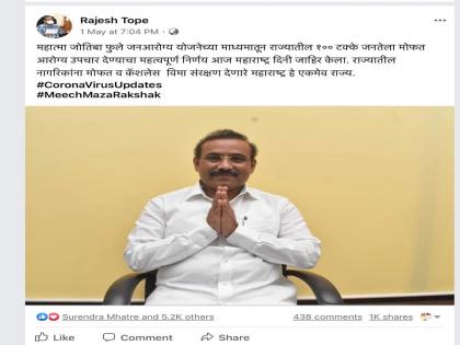 महाराष्ट्र दिनी राज्यातील कोरोनाग्रस्त १०० टक्के रुग्णांना मोफत उपचार देण्यात येतील अशी घोषणा आरोग्यमंत्र्यांनी केली होती.