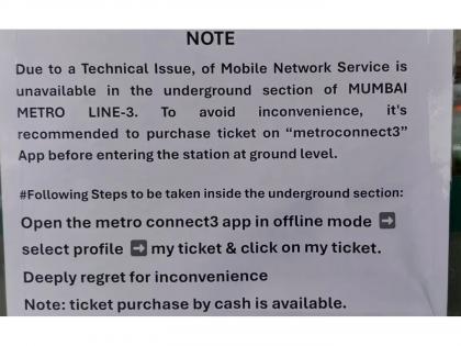 मुंबईच्यामेट्रो-३ चा बीकेसी ते आचार्च अत्रे चौक वरळी असा दुसरा टप्पा नुकताच प्रवाशांच्या सेवेत दाखल झाला. मेट्रो-३ ची सर्व स्थानकं भुयारी असल्यानं स्थानकात प्रवेश करताच मोबाइलचं नेटवर्क जात असल्याच्या तक्रारी समोर आल्या आहेत. भुयारात अद्याप मोबाइल नेटवर्कची सुविधा सुरू नसल्यानं मोबाइलवरुन मेट्रोचं तिकीट काढतानाही प्रवाशांची तारांबळ उडत आहे. याच पार्श्वभूमीवर मुंबई मेट्रो-३ कडून प्रवाशांसाठी मार्गदर्शक सूचना जारी करण्यात आली आहे.