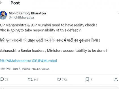 Maharashtra Senior leaders , Ministers accountability to be done !@BJP4Maharashtra@BJP4Mumbai— Mohit Kamboj Bharatiya (@mohitbharatiya_) June 5, 2024