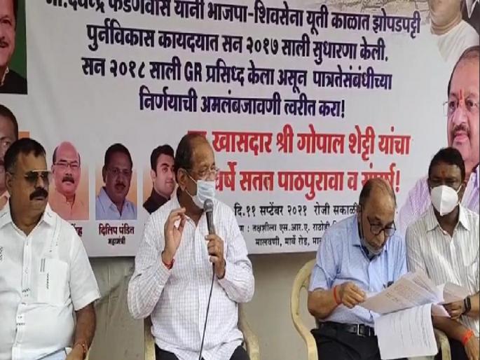 उत्तर मुंबईच्या सहा विधानसभा मतदार संघासह संपूर्ण मुंबईभर सकाळी १० ते सायंकाळी ५ पर्यंत आंदोलन करणार असल्याची माहिती खासदार गोपाळ शेट्टी यांनी लोकमतला दिली. खासदार गोपाळ शेट्टी यांनी सांगितले की, राज्याचे विरोधी पक्षनेते तत्कालीन मुख्यमंत्री देवेंद्र फडणवीस यांनी २०१७ मध्ये झोपडपट्टी पुनर्वसनसाठी नवीन जीआर काढला होता, त्याची अंमलबजावणी व्हावी, अशी माझी वर्तमान महाराष्ट्र राज्य सरकारकडे विनंती आहे. यासाठी सातत्याने पाठपुरावा करत प्रशासन, गृहनिर्माण मंत्री ते मुख्यमंत्री उद्धव ठाकरे आणि राज्यपाल भगतसिंह कोश्यारीपर्यंत त्यांनी भेटी-गाठी केल्यानंतरही २०१७ च्या सदर कायद्याची अंमलबजावणी होत नाही. त्यामुळे रस्त्यावर उतरून आंदोलन करण्याची जवाबदारी देवेंद्र फडणवीस आणि मुंबई भाजप अध्यक्ष मंगलप्रभात लोढा यांनी आपल्याला दिली आहे. शनिवारपासून रस्त्यावर उतरून आंदोलन सुरू केले आहे.