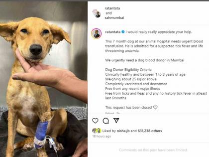 रतन टाटा यांचीही पोस्ट व्हायरल झाली असून आतापर्यंत पोस्टला ४.८ लाख लाइक्स मिळाले आहेत. तसंच अनेक कमेंट्सही आहेत. काहींनी तर रक्तदानासाठी पात्रता निकषाजवळ जाणाऱ्या काहींचे नंबरही कमेंटमध्ये पोस्ट केले आहेत. तर एकानं एक कोट्यधीश उद्योगपती एका श्वानाचा जीव वाचवण्यासाठी पोस्ट करतो ही गोष्ट खूप प्रेरणादायी आणि कौतुकास्पद असल्याचं म्हटलं आहे. जर रतन टाटांसारखा व्यक्ती प्राण्यांप्रती इतका संवेदनशील वागू शकतो तर यातून सर्वांनी बोध घेण्यासारखं आहे असंही एकानं म्हटलं आहे.