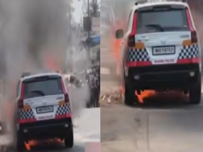 मुंबई पोलिसांची नवी कोरी गाडी भररस्त्यात पेटली! साकीनाक्यात थोडक्यात अनर्थ टळला; तांत्रिक सुरक्षेवर प्रश्नचिन्ह