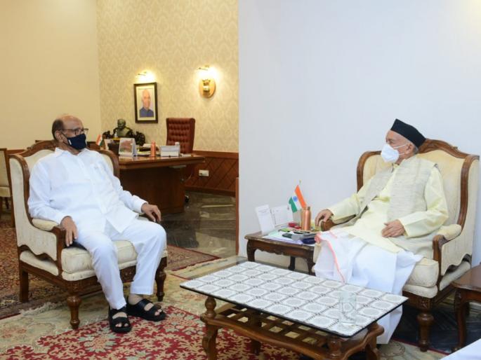 आज दुपारी शरद पवार यांनी राजभवन येथे जात राज्यपाल भगतसिंह कोश्यारी यांची भेट घेतली. यावेळी शरद पवार यांच्यासोबत राष्ट्रवादी काँग्रेसचे ज्येष्ठ नेते प्रफुल्ल पटेल हेसुद्धा उपस्थित होते. दरम्यान, शरद पवार आणि राज्यपालांमध्ये सुमारे १५ ते २० मिनिटे चर्चा झाली. ही सदिच्छा भेट असल्याचे सांगण्यात येत आहे. मात्र सध्या राज्यात असलेल्या परिस्थितीवर या भेटीत चर्चा झाली असण्याची शक्यता आहे.