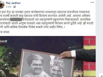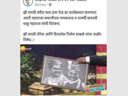 ''चला हवा येऊ द्या सारख्या टुकार कार्यक्रमाच्या माध्यमातून महाराजा सयाजीराव गायकवाड तसेच राजर्षी छत्रपती शाहू महाराज यांची विटंबना करण्यात आलेली आहे. आपल्या अतिशय खालावलेल्या विनोदासाठी ज्या महापुरुषांनी बहुजनांच्या विकासासाठी, सामाजिक सुधारणांसाठी आपले आयुष्य घालवले अशा महापुरुषांची विटंबना करणे दुर्देवी आहे. झी मराठी वाहिनी आणि बालिश दिग्दर्शक निलेश साबळे यांचा जाहीर निषेध..!''